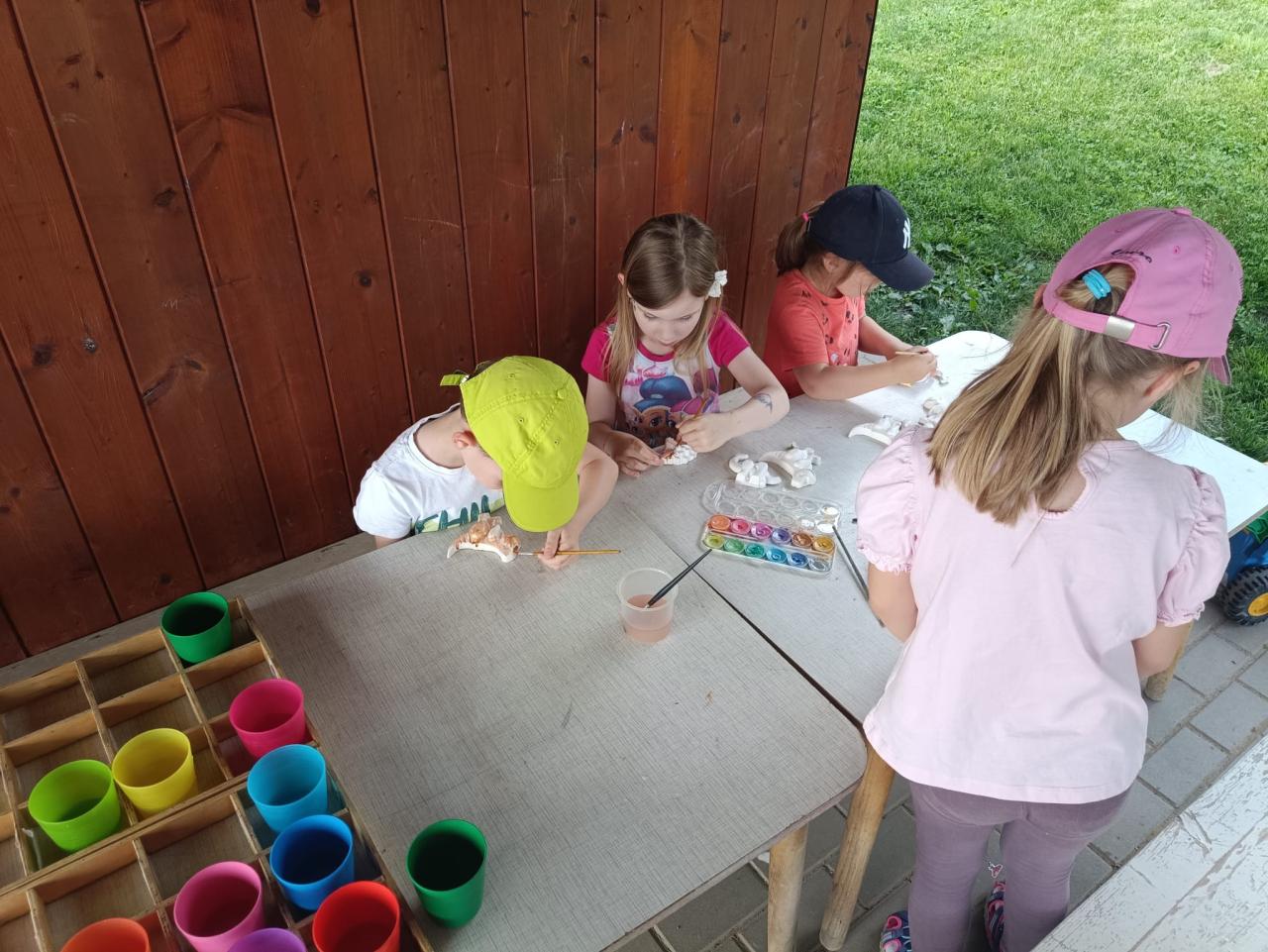 Střípky z putování za dinosaury- hry s dinosaury, vyroba dinosauřího lektvaru, stavění sopky, prohlížení publikací o dinasaurech.