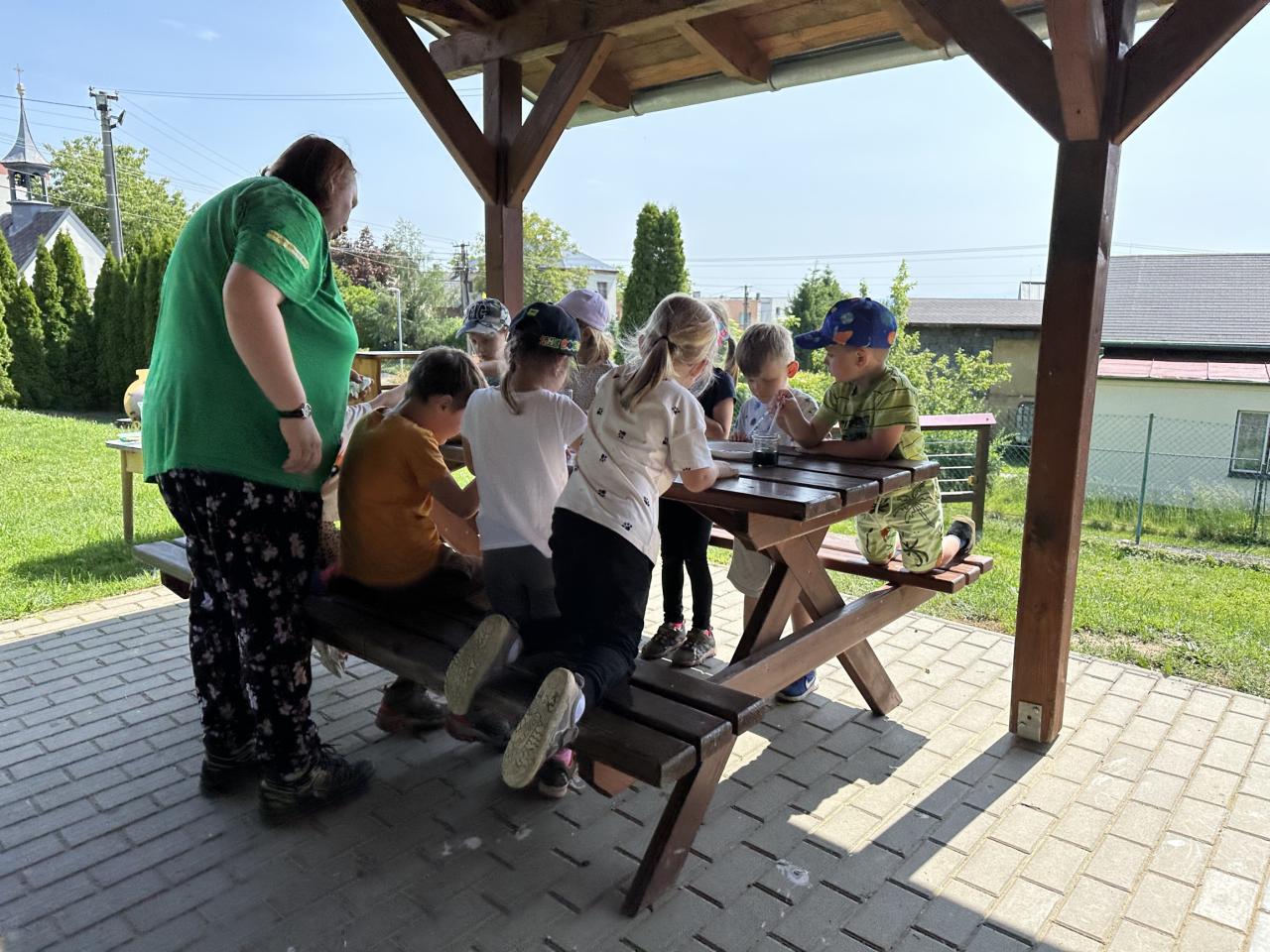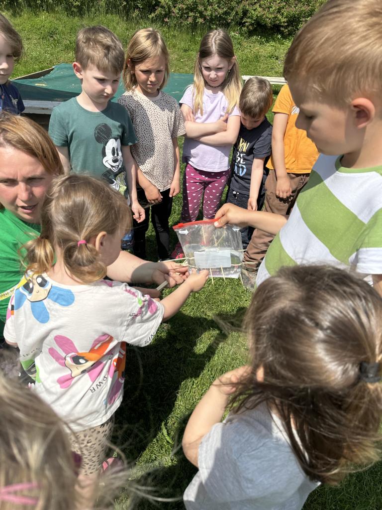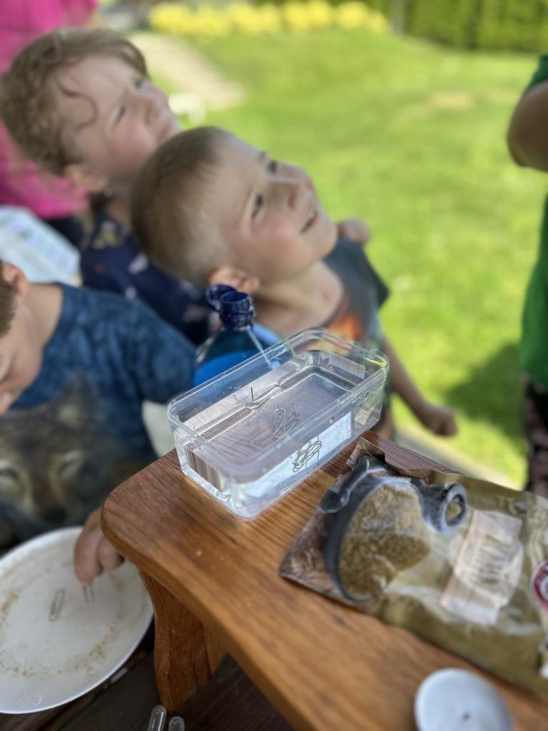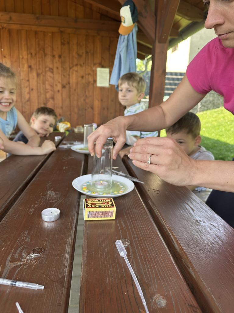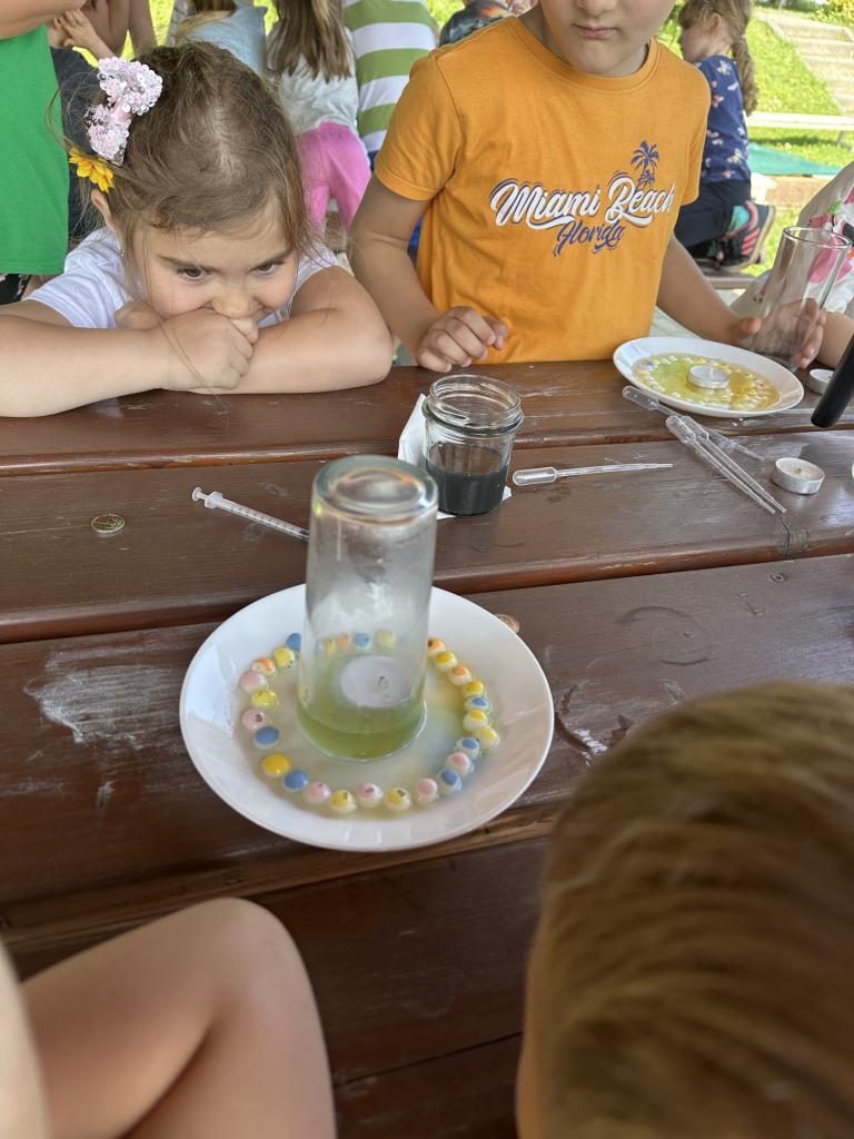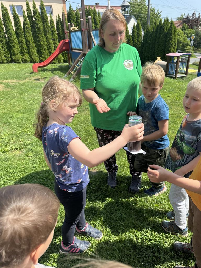 Děti měly mnoho aktivit, pozorovaly různá skupenství vody, dělaly pokusy s vodou- zapouštění barev do vody - pozorování jak se barva míchá, míchání barev, duha na talířku, co se stane když...?, propichování sáčku s vodou, kapaní pipetou na minci- vodní bublina a jiné zajímavosti.