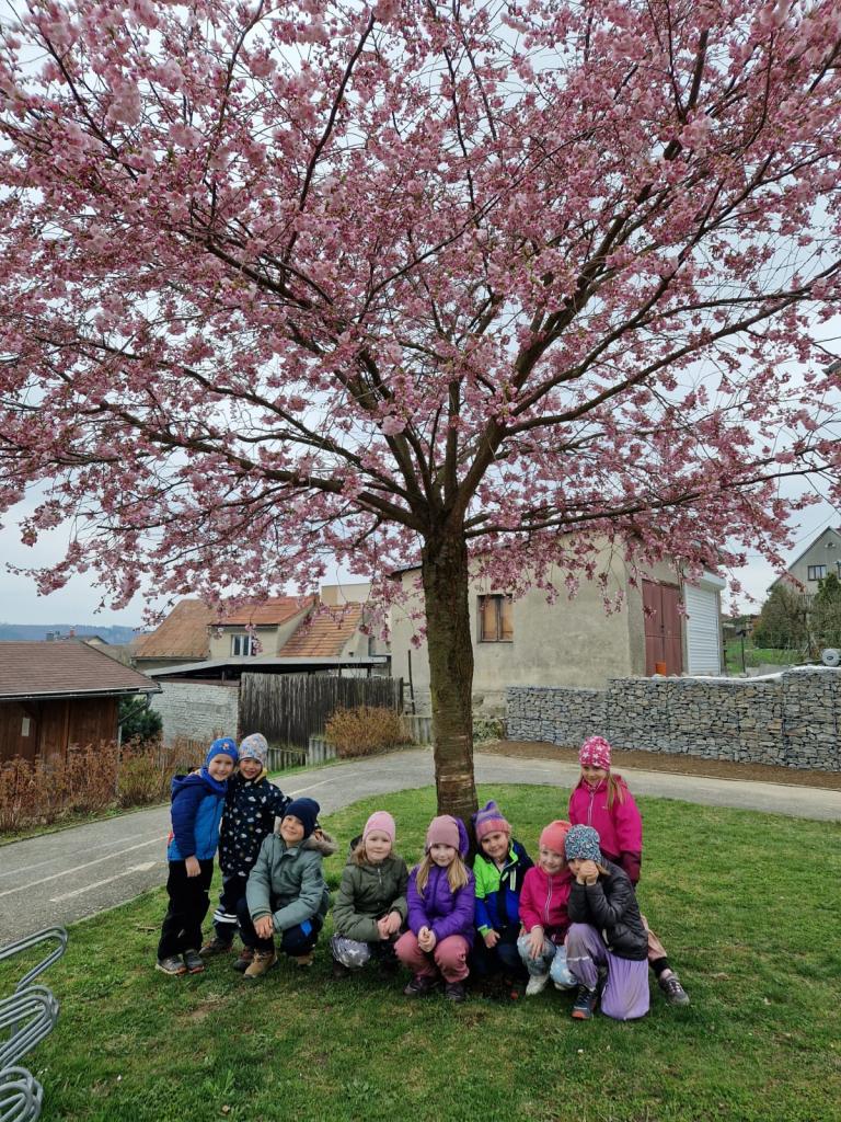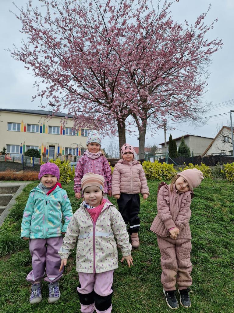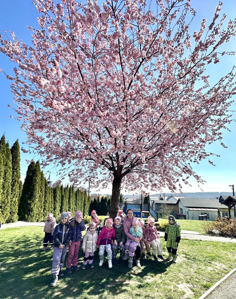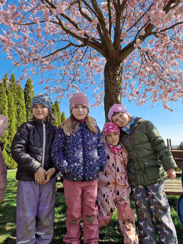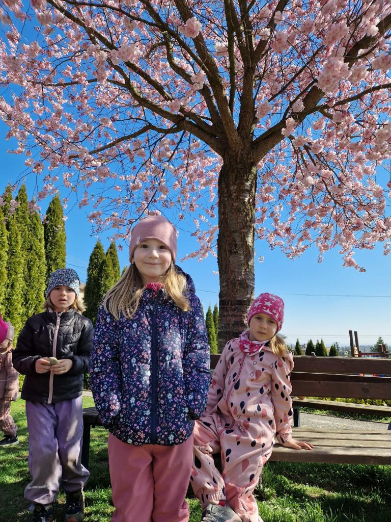 Rozkvetlá sakura a veselé jaro ve školce- na hřišti i ve školce.