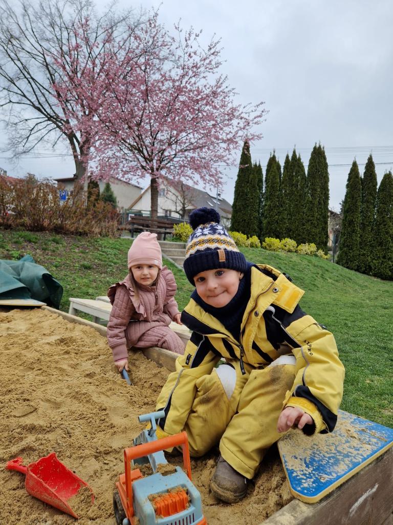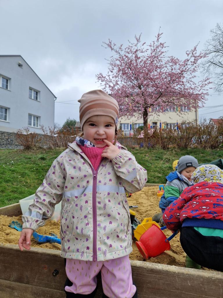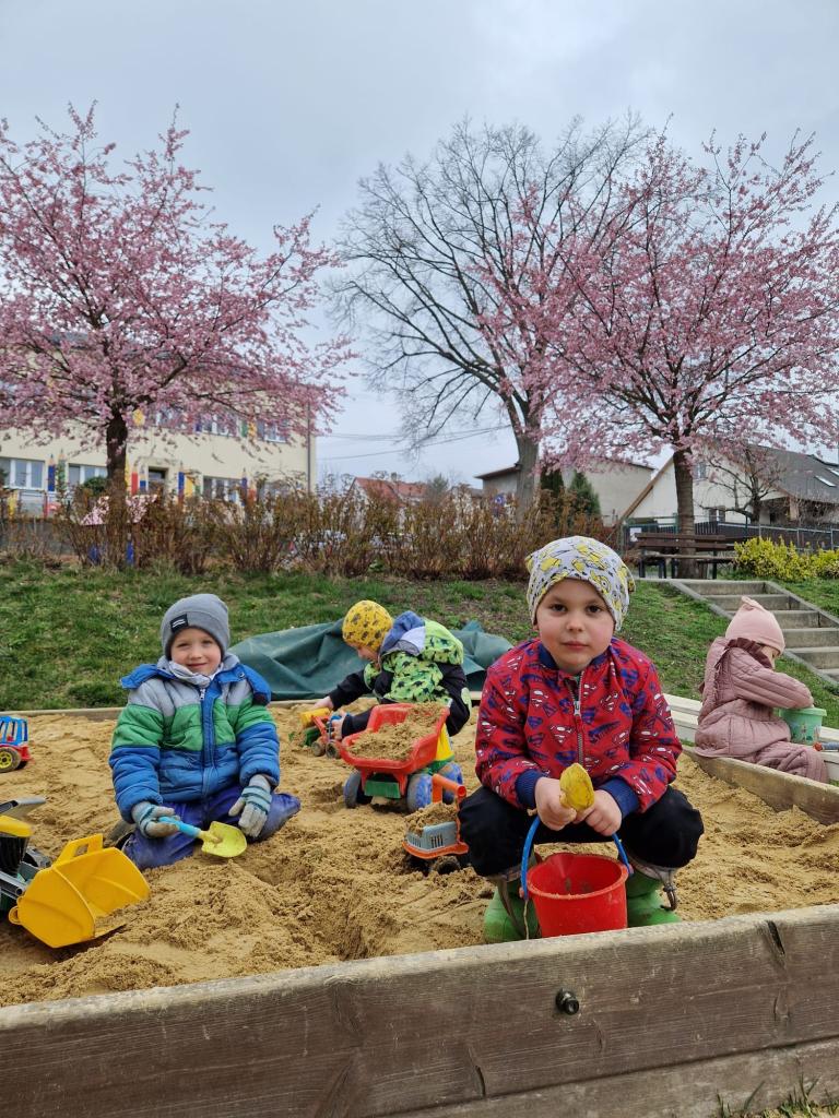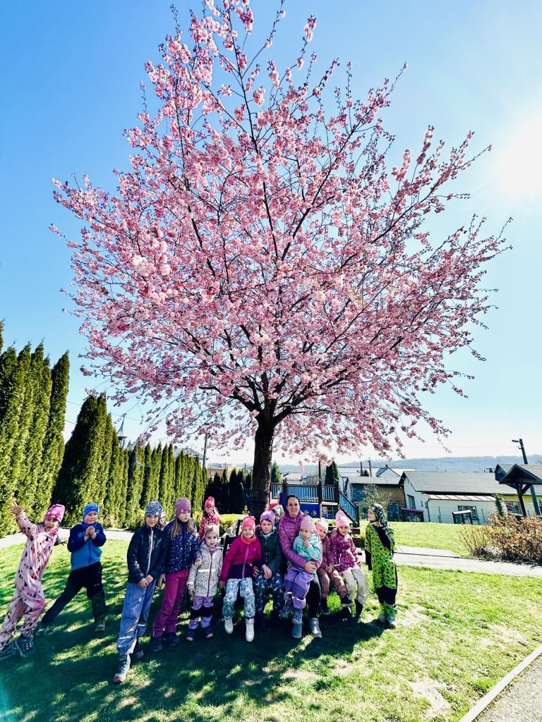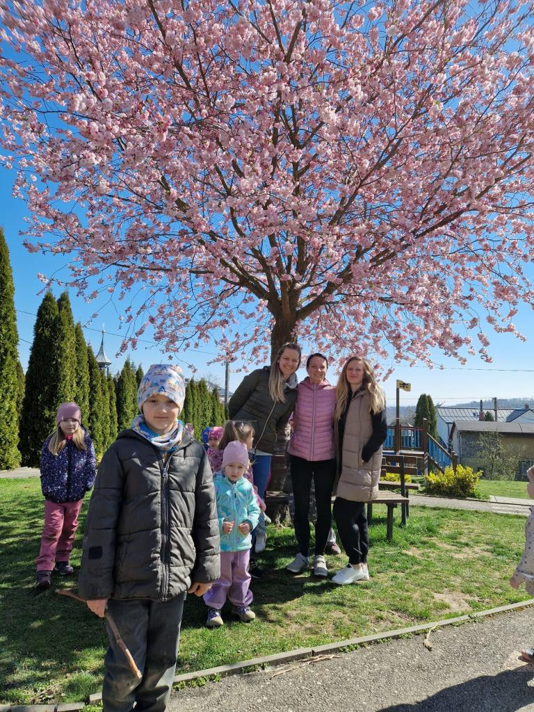 Rozkvetlá sakura a veselé jaro ve školce- na hřišti i ve školce.