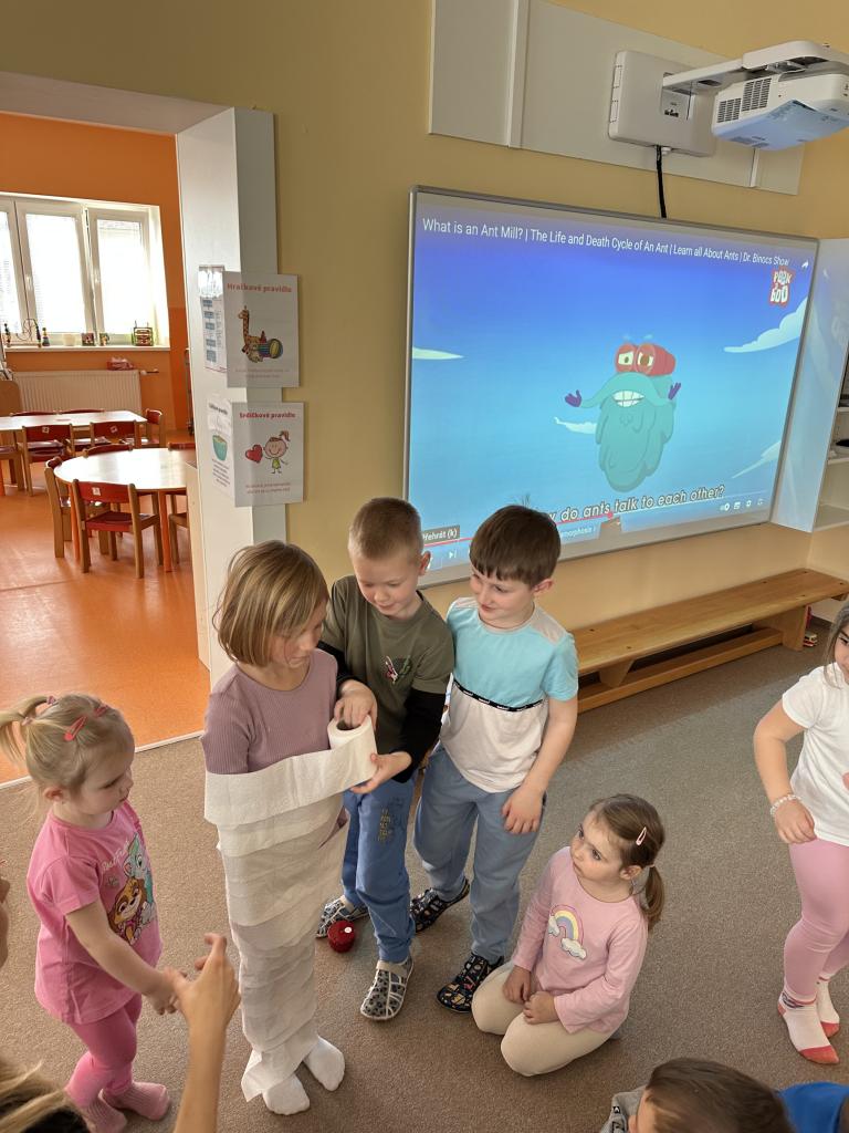 Mravenci, berušky, motýli, housenky a další hmyz provázel děti dvoutýdenním tématem ,,Probouzení nového života”. Děti tvořily, malovaly, skládaly, kreslily, počítaly, pozorovaly a užily si spoustu zábavy. Velkým překvapením bylo zakuklení nalezené housenky během noci. Čekáme na vyklubání motýla ☺️