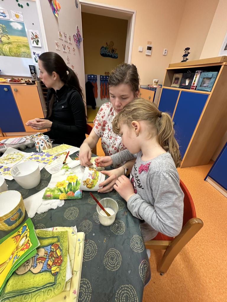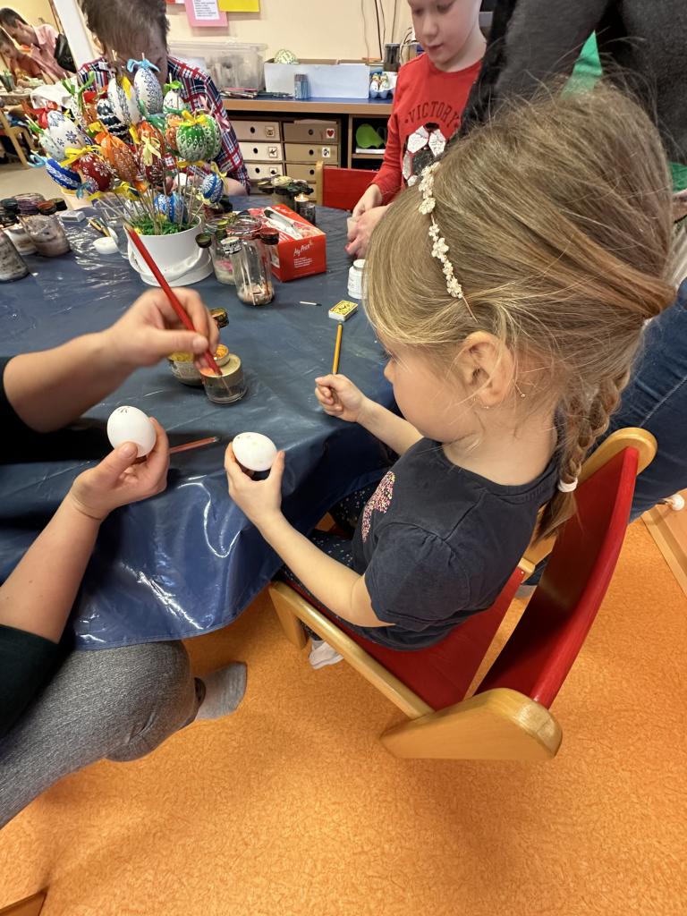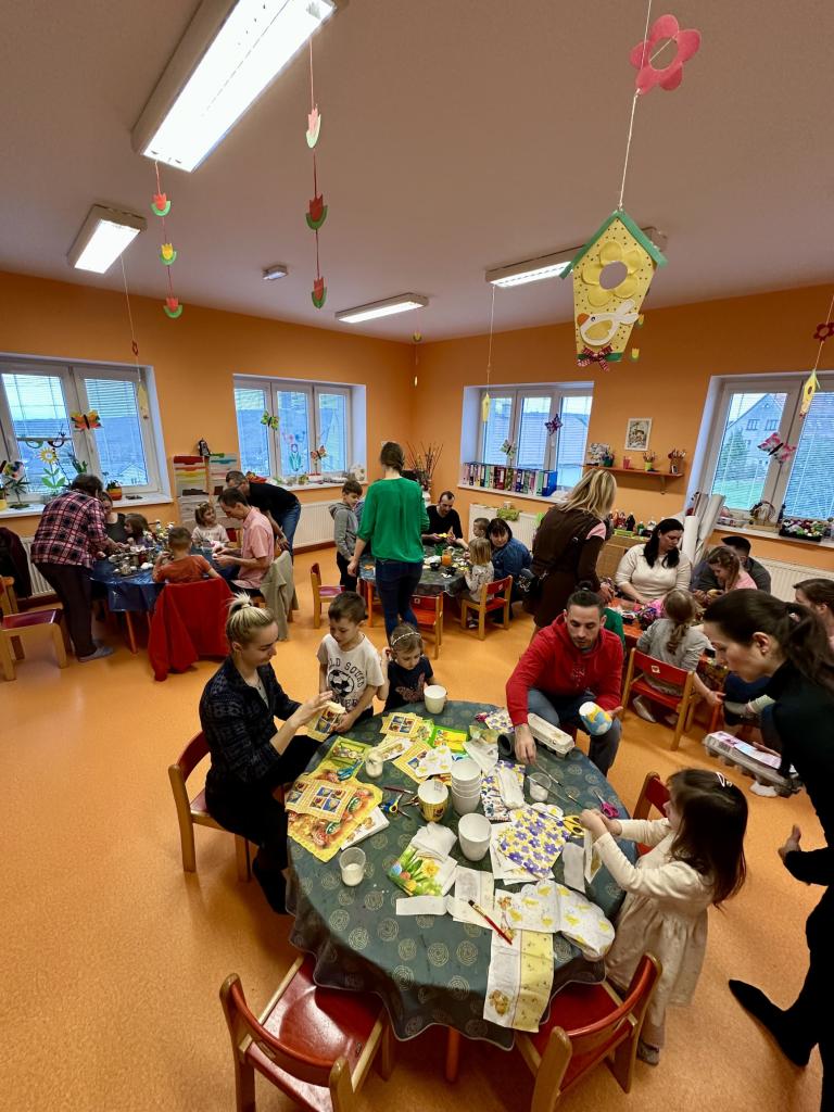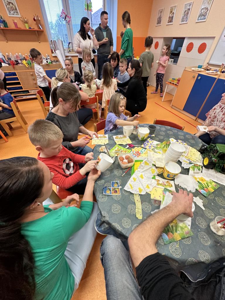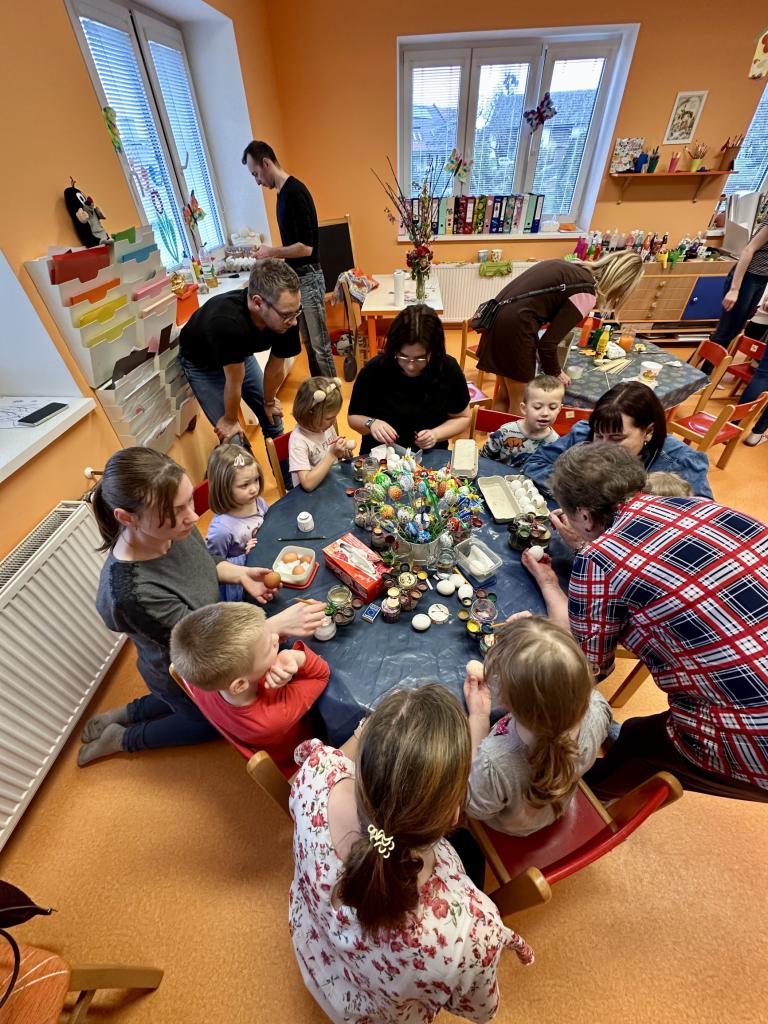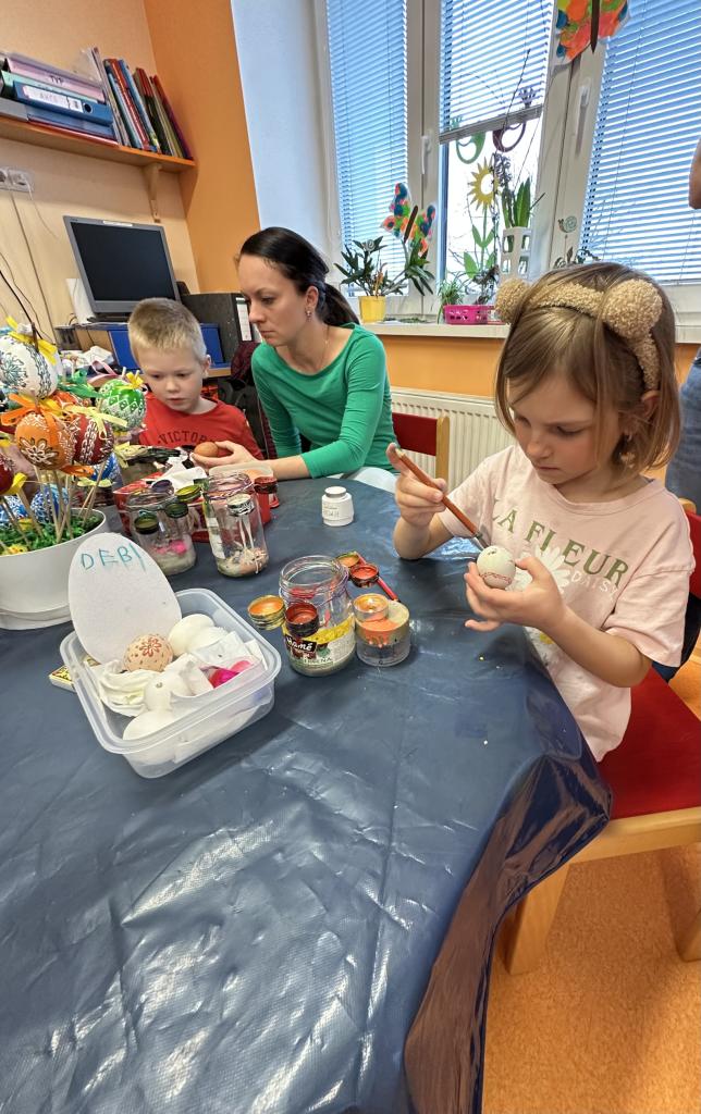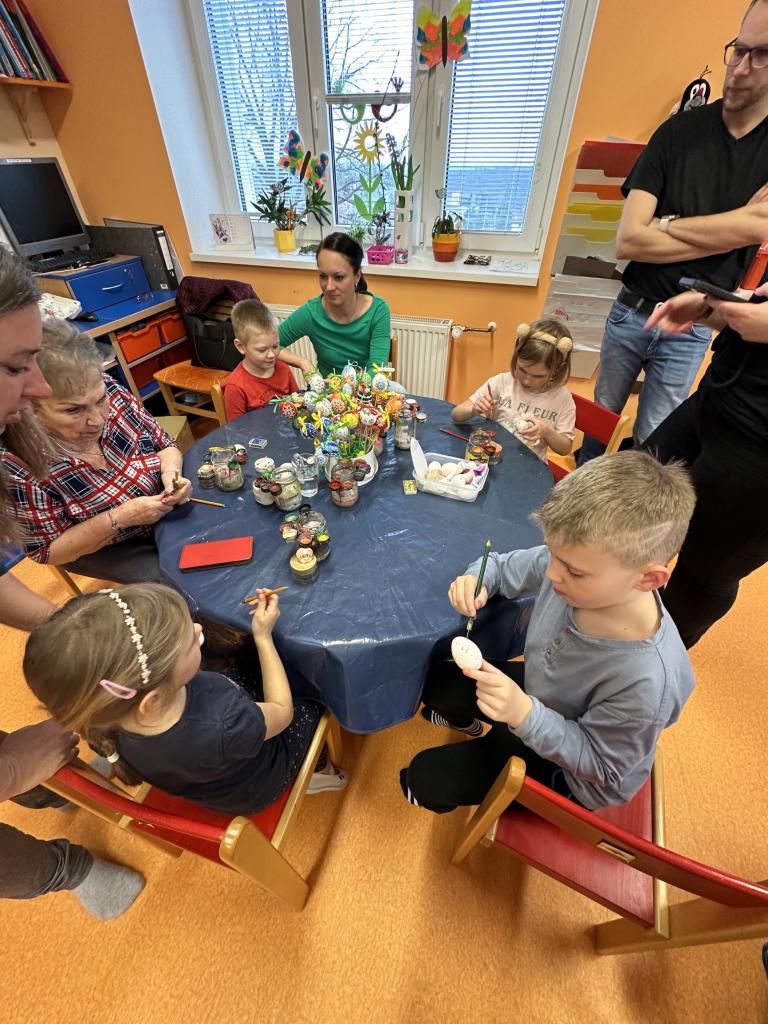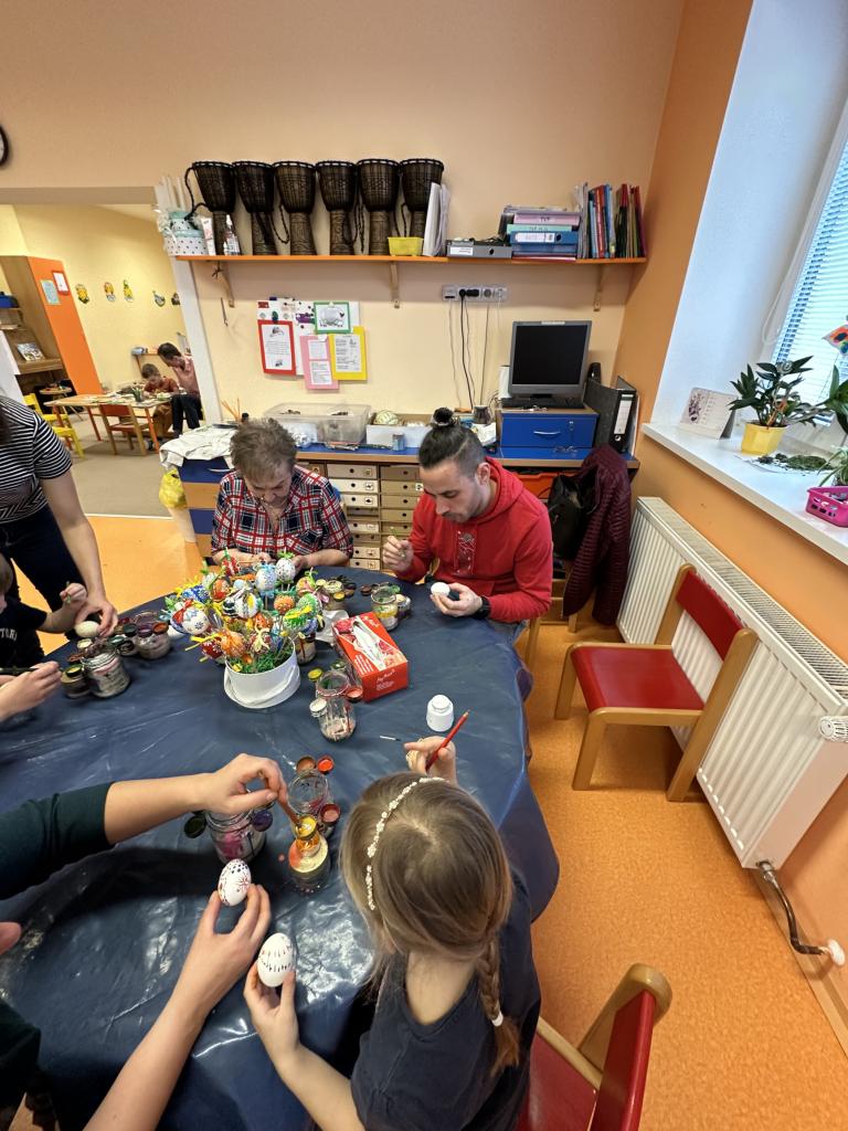 Koncem března jsme strávili příjemné odpoledne s dětmi a rodiči u velikonočního tvoření. Zdobili jsme květináče, barvili narcisy, drátkovali zajíčky a vyráběli několik druhů velikonočních kraslic.