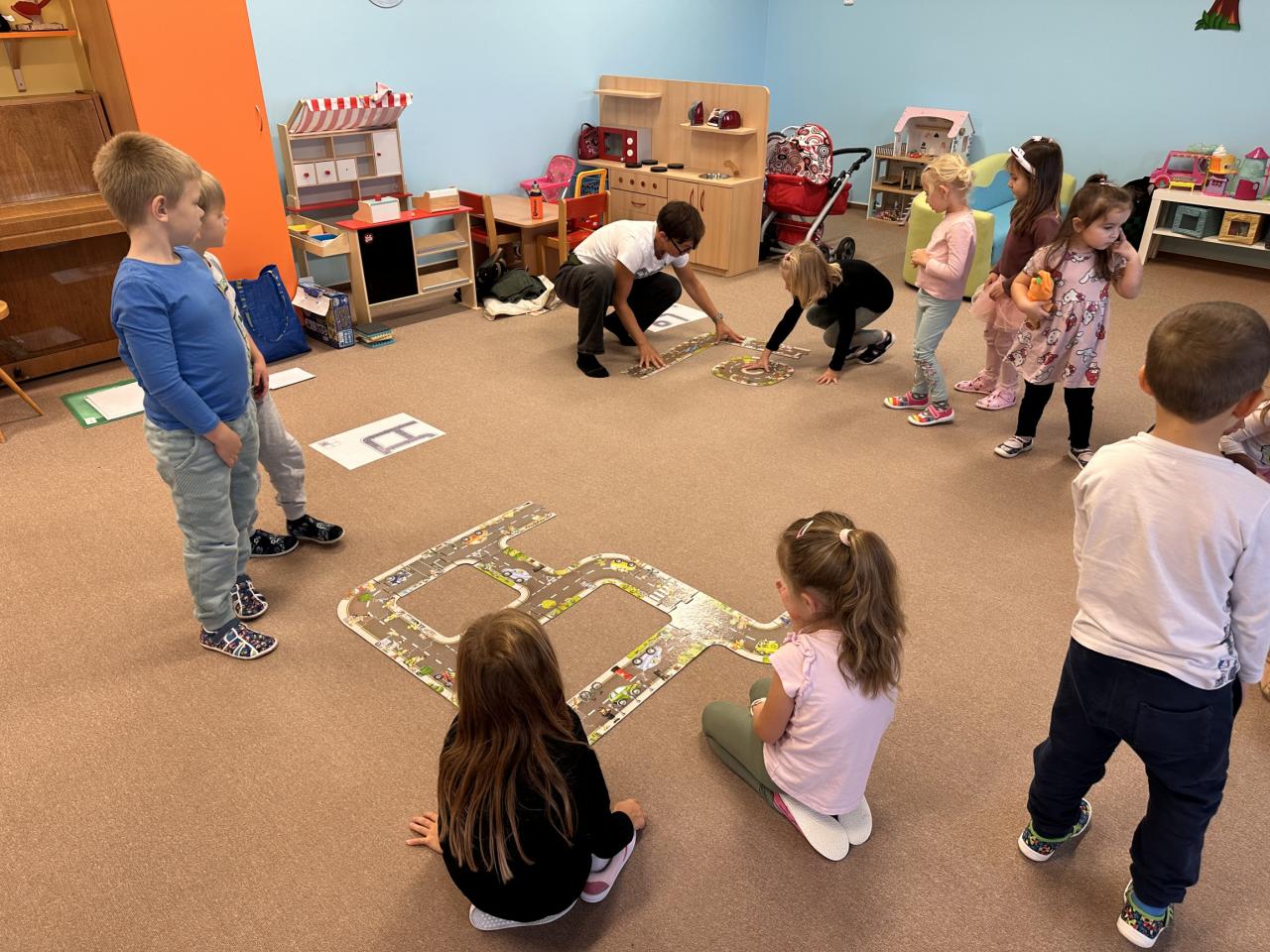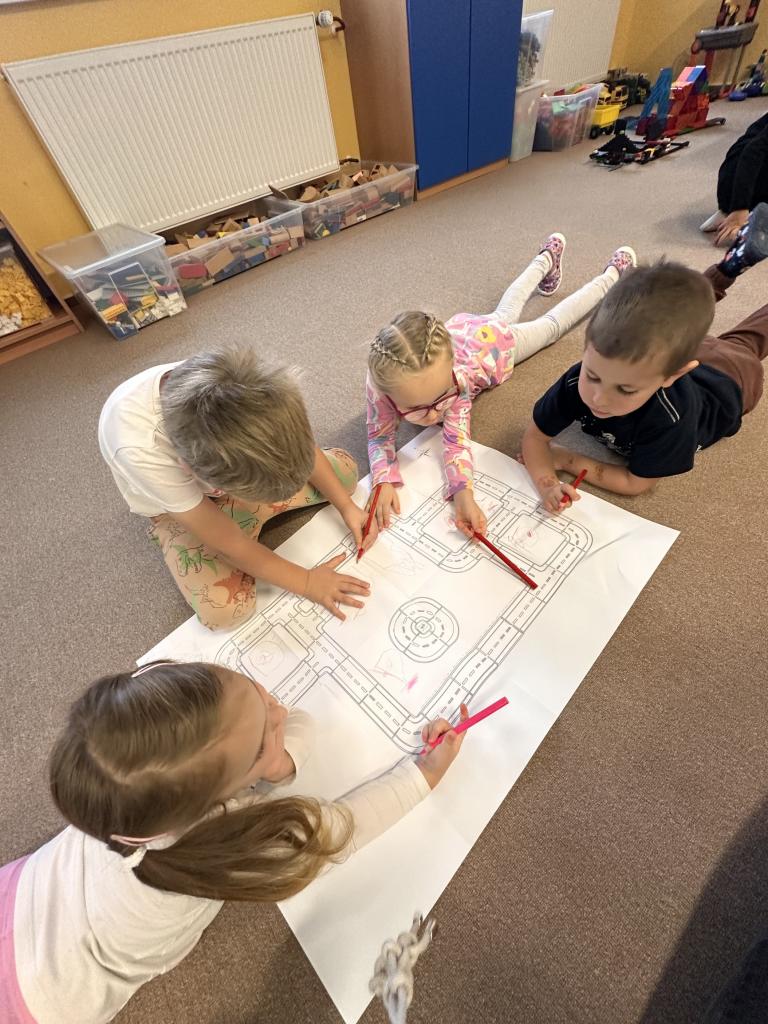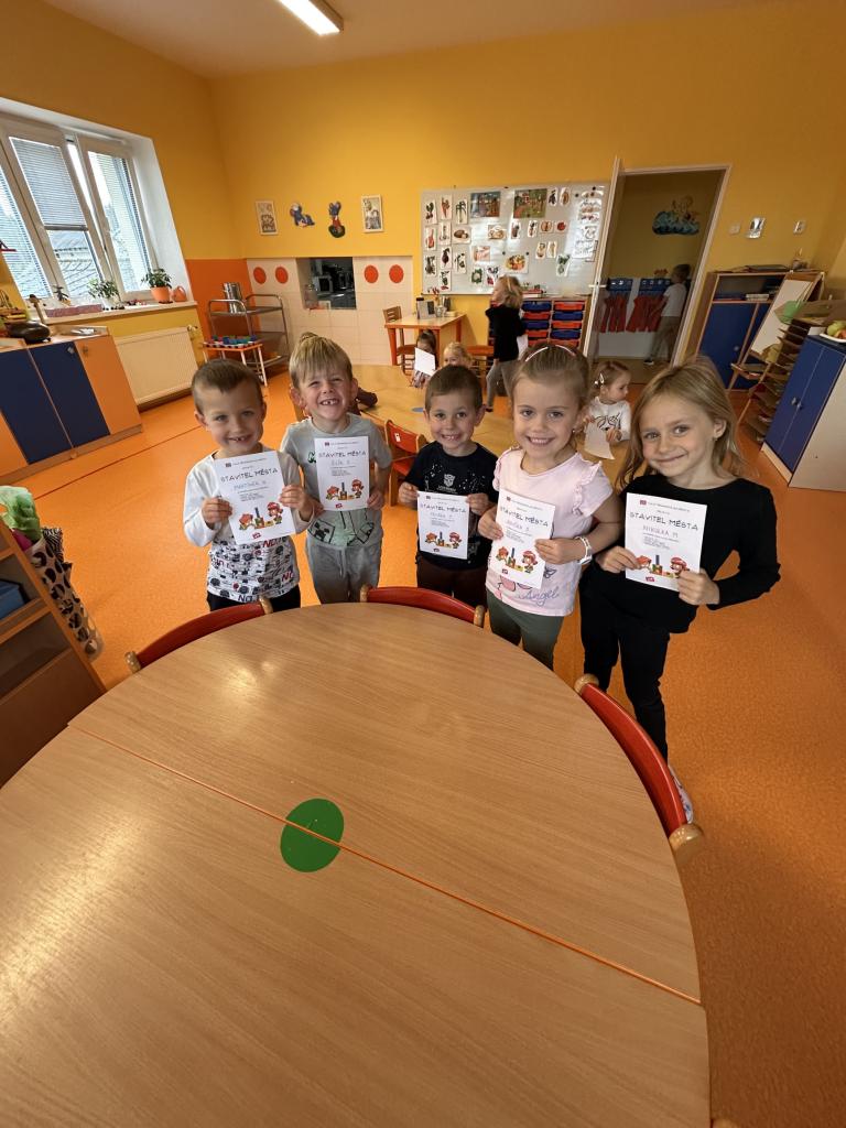 Během tohoto edukačního projektu se děti naučily poznávat značky/ označení budov (nemocnice, lékárna, čerpací stanice aj.), postavily z lego Duplo kostek budovy, poskládaly cesty z puzzlí, vytvořily město z postavených budov a a cest.